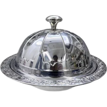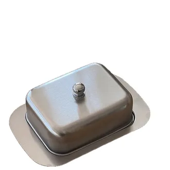 French Butter Box with Retro Stainless Steel Lid Western Tableware Pastry Tray for Butter Storage with Handle