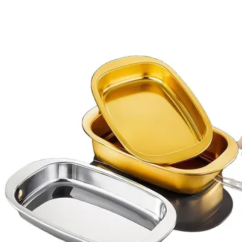 Stainless Steel Commercial Household Dish Square Rectangular Non-Slip Flat Bottom Double-Ear Anti-Scalding Fish Pot Dish